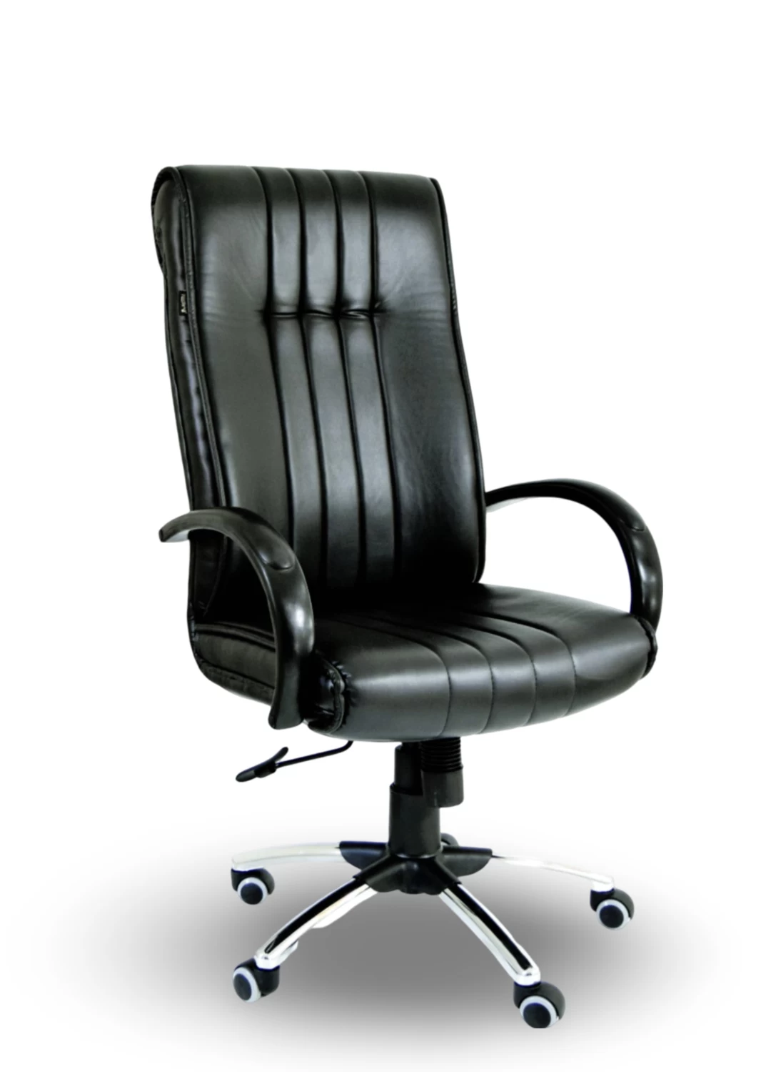 Upgrade your office space with this sleek and sophisticated Executive chair. Foam upholstered, leatherette Upholstery. Provided with Tilt Mechanism with one position stop. The caster wheels make it easy to move around. Both comfort and durability for long hours of work. Add a touch of elegance to your workspace with this stylish and functional chair.
