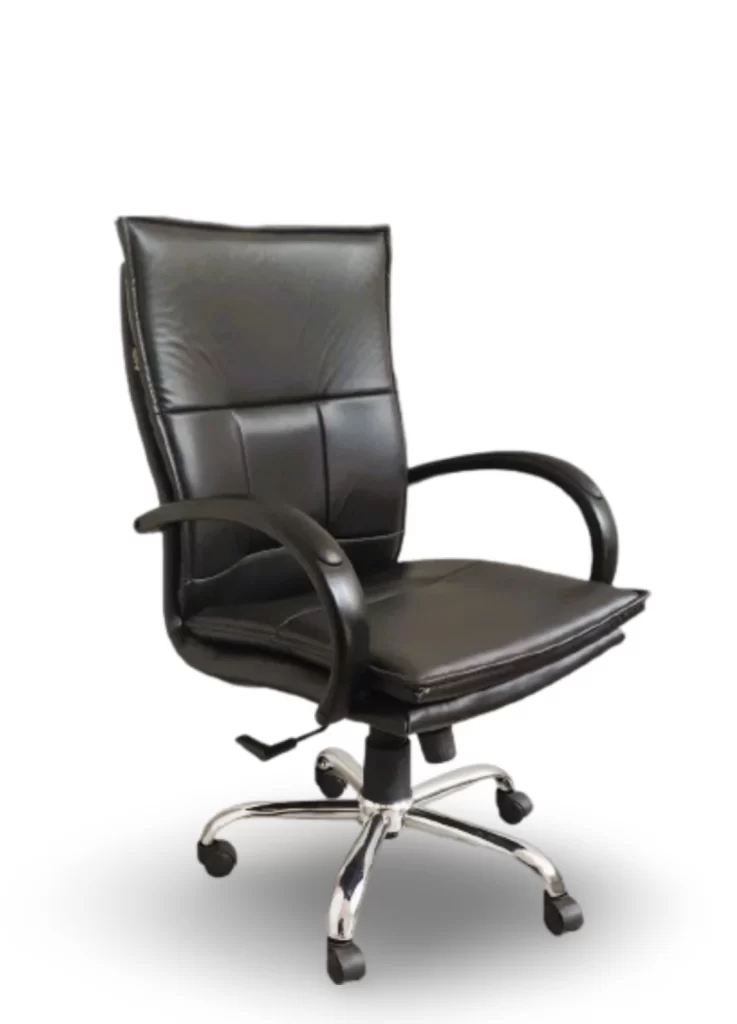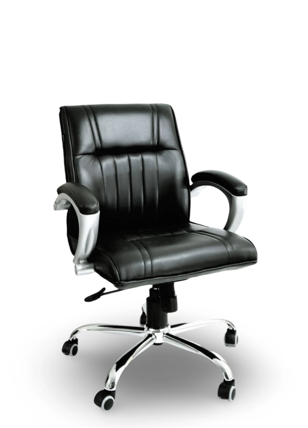 Designed for both comfort and durability, this chair features a foam cushioned seat and back, ensuring a cozy and supportive experience throughout your workday. The leatherette upholstery adds a touch of elegance, while the cushioned armrests provide extra relaxation. With its tilt mechanism and one position lock, you can easily find the perfect angle for your needs. The chair is built on a chrome plated heavy base, equipped with nylon castors for smooth mobility.