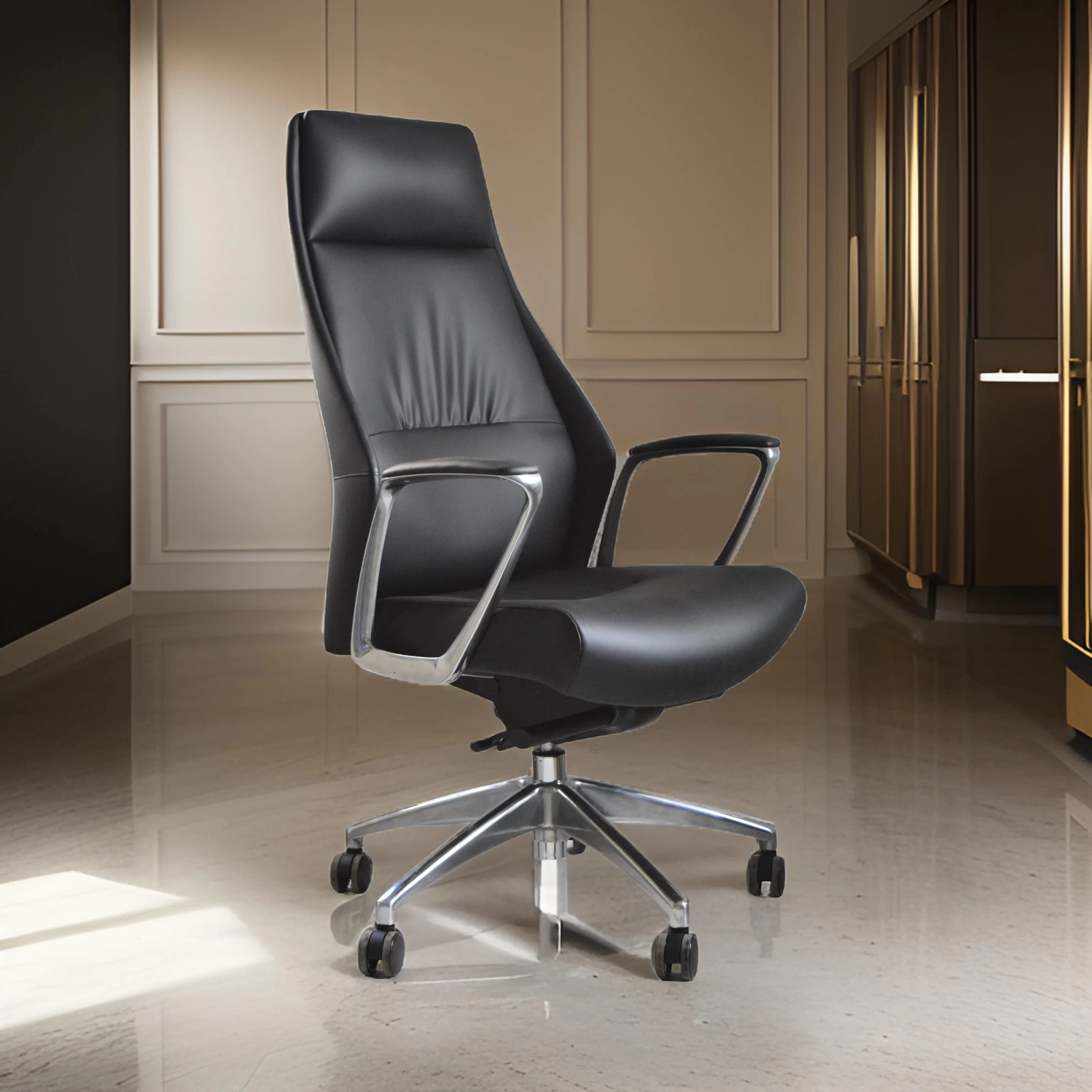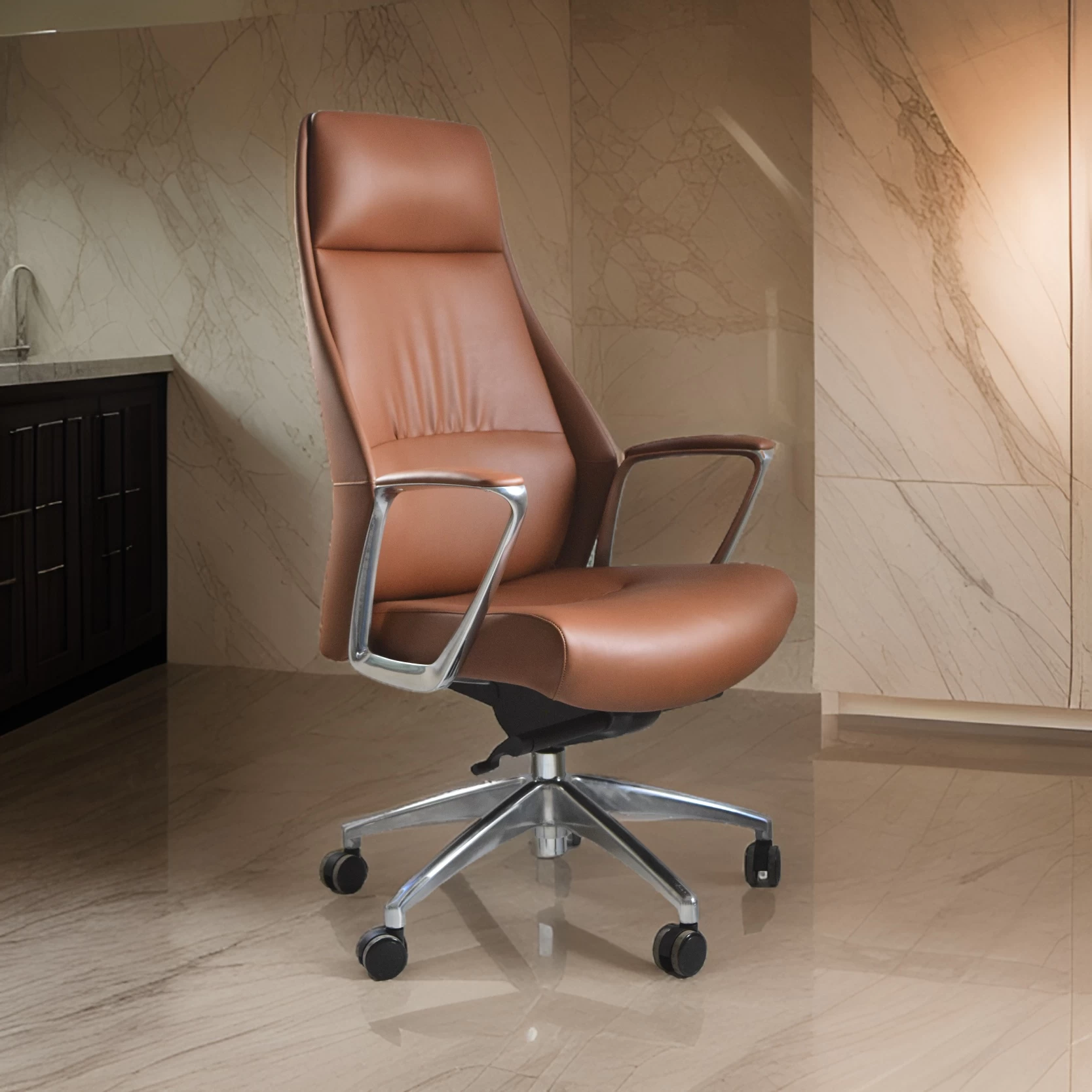 Introducing our elegant Executive Chair, the perfect addition to any professional Workspace. Crafted with high-quality leatherette, this chair exudes Sophistication and Durability. Its rich color adds warmth and style to any room, creating a welcoming and professional atmosphere. Designed for comfort, it features a cushioned seat and backrest, providing optimal support during long hours of work. With its sleek and timeless design, Executive Chair is a must-have for those seeking both functionality and aesthetics in their workspace.